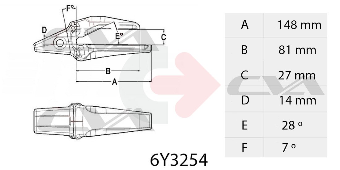 Adapter zęba do łyżki koparki J250. Stosowane z lemieszem o grubości 25mm