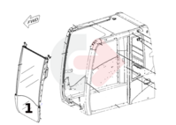 Szyba przednia dolna do koparek gąsienicowych Serii D produkowanych od 2007 do 2011 roku, oraz do koparek kołowych produkowanych od 2007 do 2015 roku.
